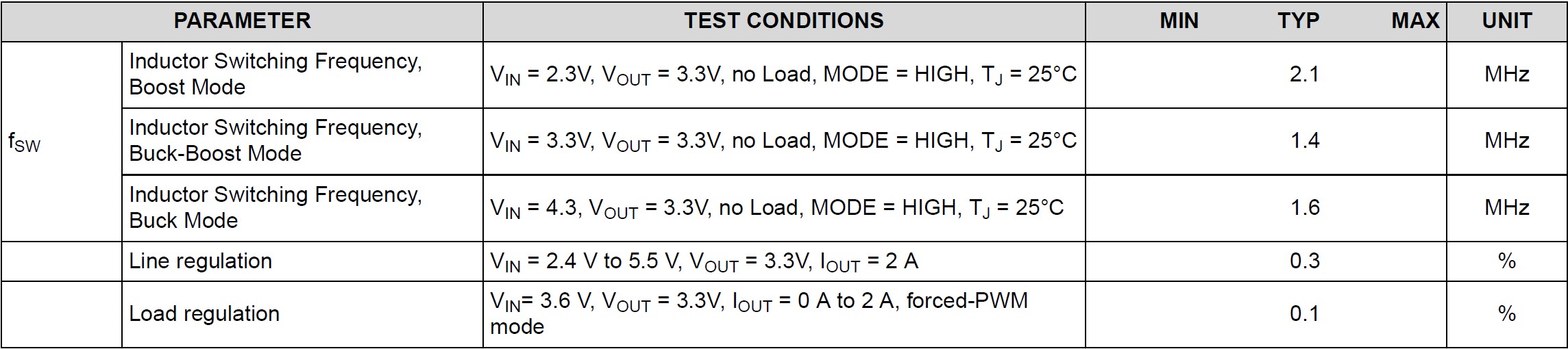 which again matches the expected load regulation during buck mode (low) with PWM/PFM mode enabled.
