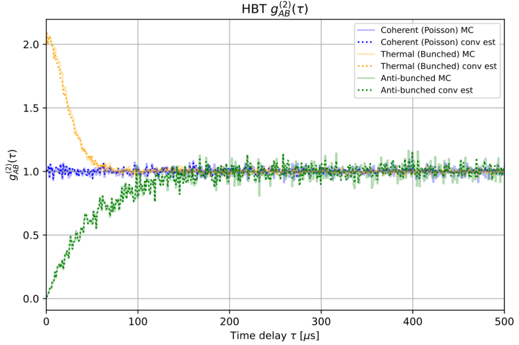 For quantum applications, it is often essential to characterize lights’ statistical emission properties to verify one has a genuinely quantum light source. Similarly, the accuracy of lasers should be limited by Poissonian statistics that govern the number of photons. One way to determine these statistical properties of light emission is through the \(g^{(2)}(\tau)\) correlation function, a widely used metric in classical and quantum optics.