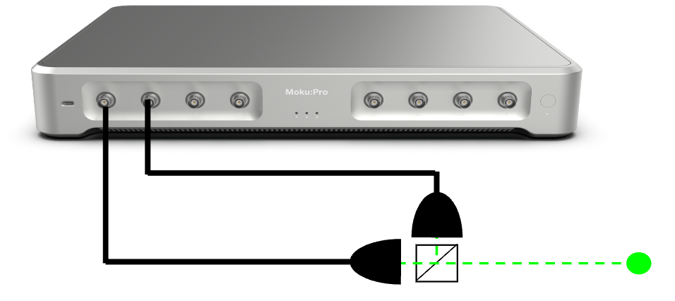 In this application note, we demonstrate how \(g^{(2)}(\tau)\) can be measured using Moku and provide some examples with a Hanbury-Brown-Twiss-like interferometer. Using the Moku Time & Frequency Analyzer’s ability to capture continuous event data with <20 ps resolution, we simulate a HBT setup and record time-tagged photon events. We then walk through the procedure for generating a time-delay histogram and using it to calculate the second order correlation function.