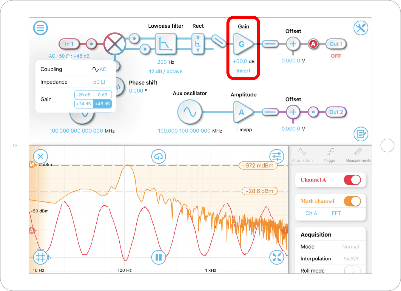 In the new iPad app version 1.9.1, the dynamic range and dynamic reserve have been significantly improved for the LIA. A digital gain option is no longer required for most measurements. In this document, we will walk through how to get the exact same result after the 1.9.1 update.